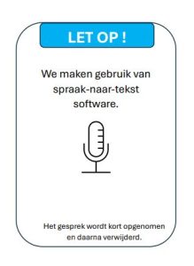 - Ziet u dit bordje in de spreekkamer, dan kan er gebruik gemaakt worden van spraak-naar-tekst software.
